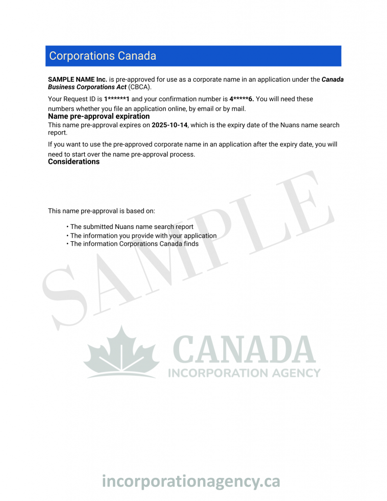 Yes, use our Federal Name Pre-Approval or NUANS & Compliance Check service before submitting a name to avoid common rejection triggers.