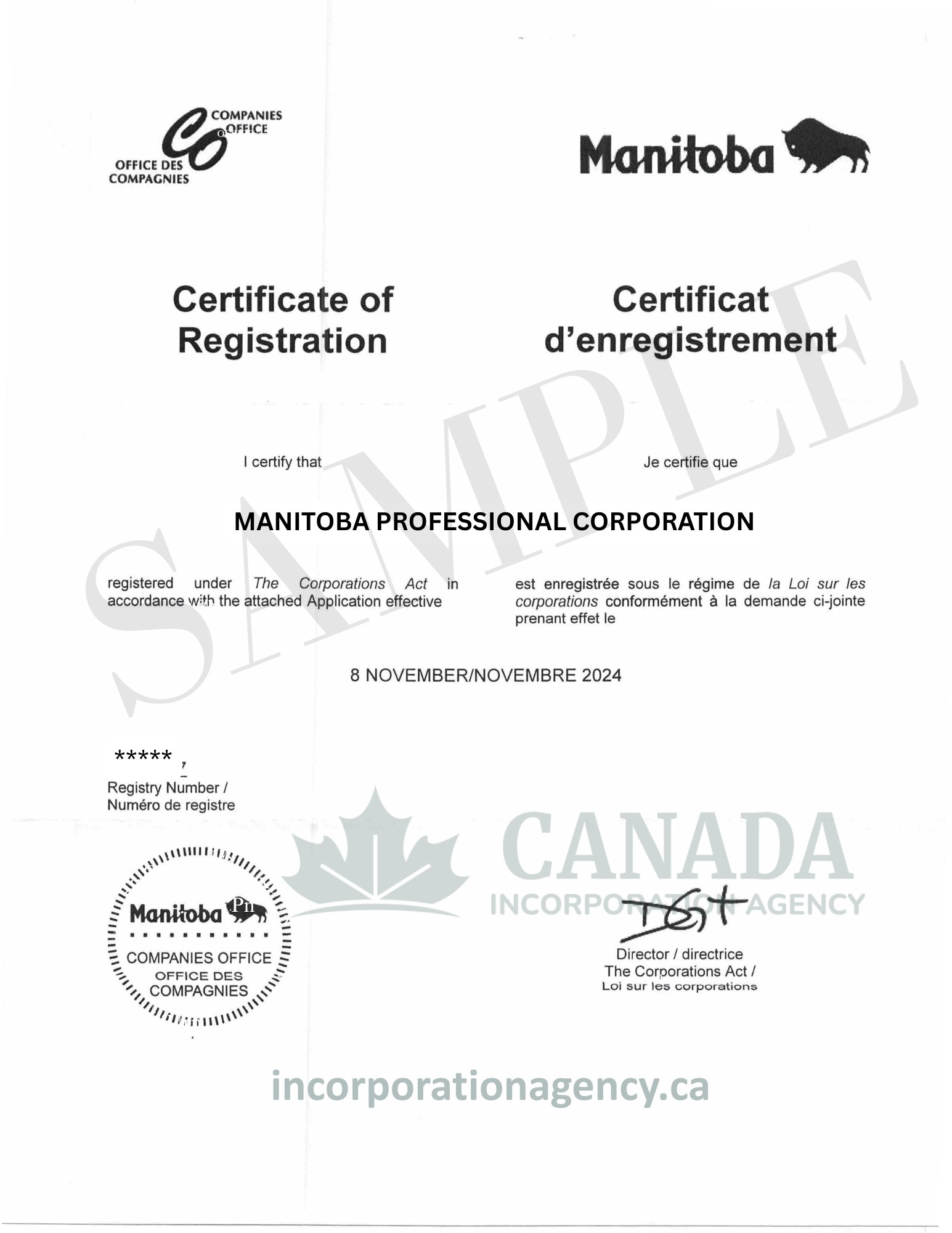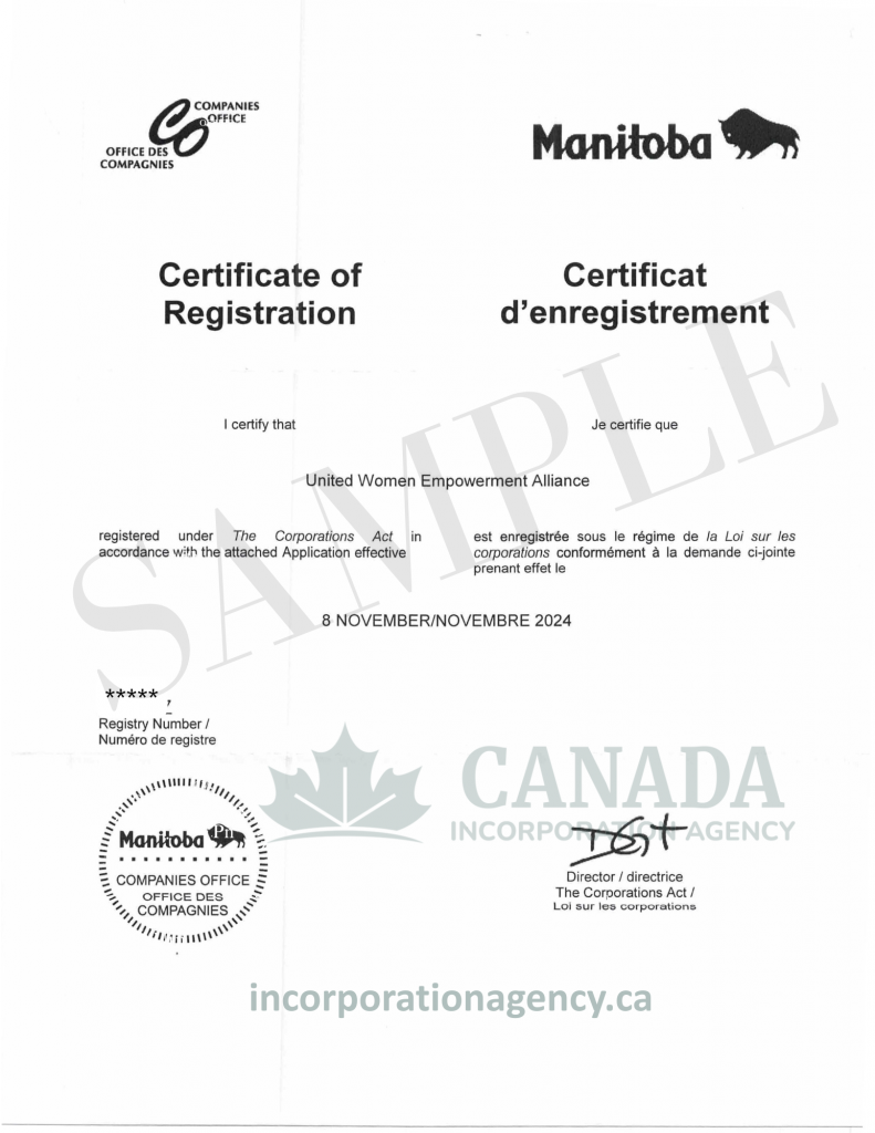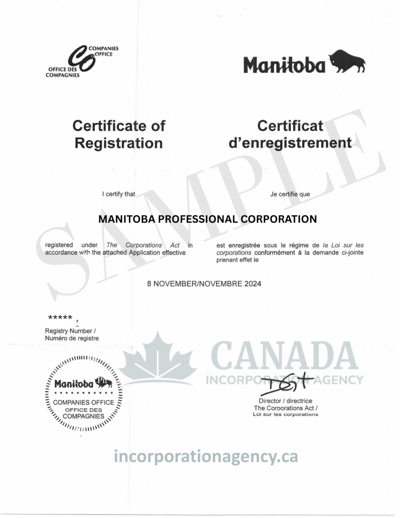 To incorporate in Manitoba you will need an approved company name (unless you incorporate a numbered company); Your articles of incorporation; names and addresses of all directors and officers; a registered office address in Manitoba.