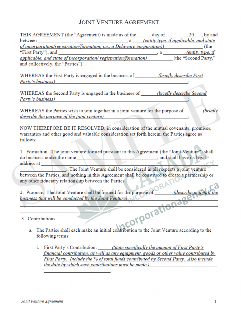 โ Different provinces have different rules and regulations. Your Joint Venture Agreement will be customized for your province.